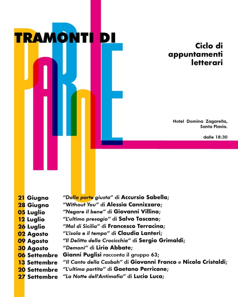 L’iniziativa, alla sua Prima edizione, è promossa dalla Stampa Parlamentare Siciliana in collaborazione con il gruppo Domina hotel della famiglia Preatoni, Innovation Island e Restart Palermo e patrocinata dall’Assemblea regionale siciliana, dalla Presidenza della Regione siciliana e dal Comune di Bagheria. “Tramonti di Parole” non sarà un semplice evento, ma un momento di incontro e dialogo dove autori, lettori e appassionati di cultura potranno confrontarsi, scambiare opinioni e accrescere le proprie conoscenze. Si propone di rompere gli schemi e di offrire un nuovo sguardo sulla realtà contemporanea, attraverso le parole e le esperienze degli autori coinvolti, come Francesco Terracina, Lucio Luca, Salvo Toscano, Alessia Cannizzaro, Accursio Sabella, Giovanni Villino, Giovanni Franco, Nicola Cristaldi, Claudia Lanteri, Gianni Puglisi, Lirio Abbate, Gaetano Perricone e Sergio Grimaldi.