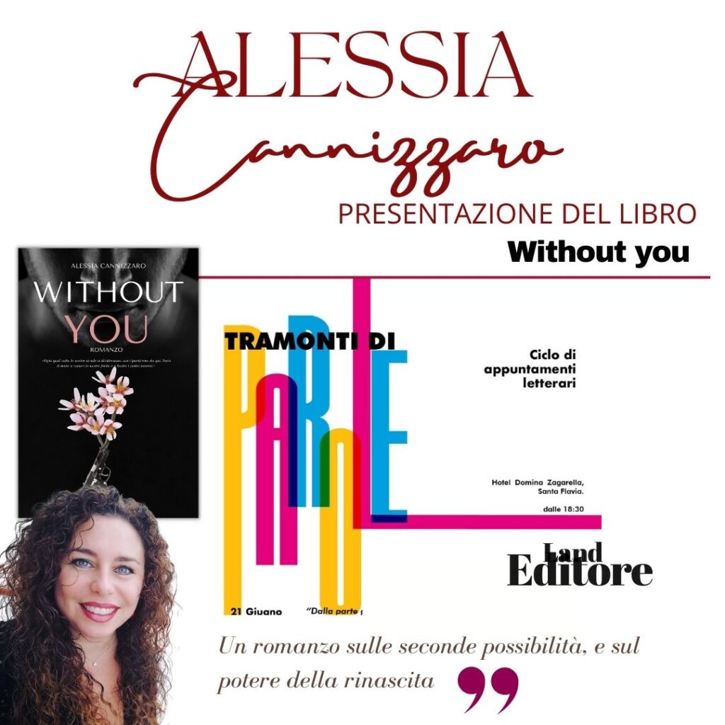 Il prossimo appuntamento con “Tramonti di Parole” è fissato per venerdì 28 giugno, alle ore 18:30 con la presentazione del libro “Without you”, Land Editore, della giornalista Alessia Cannizzaro: un romanzo che mescola elementi thriller e romance, all’interno di una narrazione avvincente e coinvolgente. Without You non è solo un thriller avvincente, ma anche un romanzo di formazione che conduce i lettori per mano alla scoperta di sé. L’autrice esplora l’animo umano, mostrando debolezze e insicurezze, e fa rinascere la protagonista dalle proprie ceneri come una novella Fenice 2.0. facendole via via abbandonare le maschere che la vita l’aveva obbligata a indossare. Con lei discuterà Giuseppe Marinaro, giornalista dell’Agi. Sponsor della serata la Cantina Duca di Salaparuta.