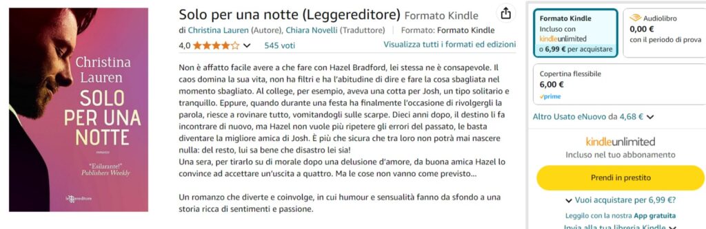 Il duo di autrici Christina Hobbs e Lauren Billings, conosciute come Christina Lauren, colpiscono ancora con ” Solo per una notte”. Josh e Hazel sono amici con un passato di appuntamenti disastrosi. Decidono di aiutarsi a vicenda a trovare l’amore, ma scopriranno che la persona perfetta potrebbe essere stata sotto il loro naso per tutto il tempo. Un libro divertente, dolce e irresistibile, perfetto per chi crede che l’amicizia possa trasformarsi nel più dolce degli amori.