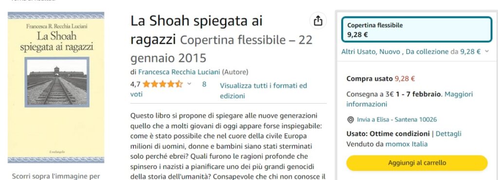 Questo libro si propone di spiegare alle nuove generazioni quello che a molti giovani di oggi appare forse inspiegabile: come è stato possibile che nel cuore della civile Europa milioni di uomini, donne e bambini siano stati sterminati solo perché ebrei? Quali furono le ragioni profonde che spinsero i nazisti a pianificare uno dei più grandi genocidi della storia dell’umanità? Consapevole che chi non conosce il proprio passato è destinato a riviverlo, l’autrice cerca di rispondere a queste domande, fornendo al lettore, e in particolare agli studenti delle scuole superiori, per i quali il libro è stato pensato, tutte le informazioni e gli strumenti culturali per poter comprendere un evento così tragico, e ricostruendo con rigore e lucidità le tappe di un percorso che dallo strisciante antisemitismo di inizio Novecento conduce ai forni crematori e alle camere a gas. Età di lettura: da 11 anni.