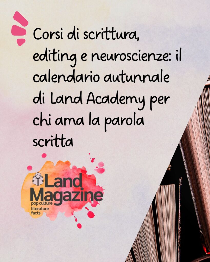 Land Academy presenta un calendario di corsi online imperdibili dedicati a chi ama scrivere, leggere, correggere, editare e comprendere il potere delle storie. Da settembre a ottobre 2026 autori, editori e appassionati avranno l’opportunità di formarsi con professionisti del settore, in percorsi strutturati ma accessibili, ricchi di contenuti e spunti pratici.