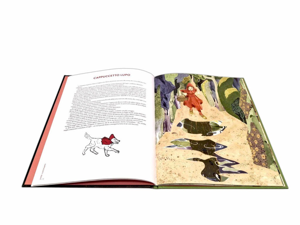 Le iillustrazioni di Negrin sono anima e fulcro del libro, rosso e verde dominano i disegni e la copertina, che riporta dei bellissimi intagli.