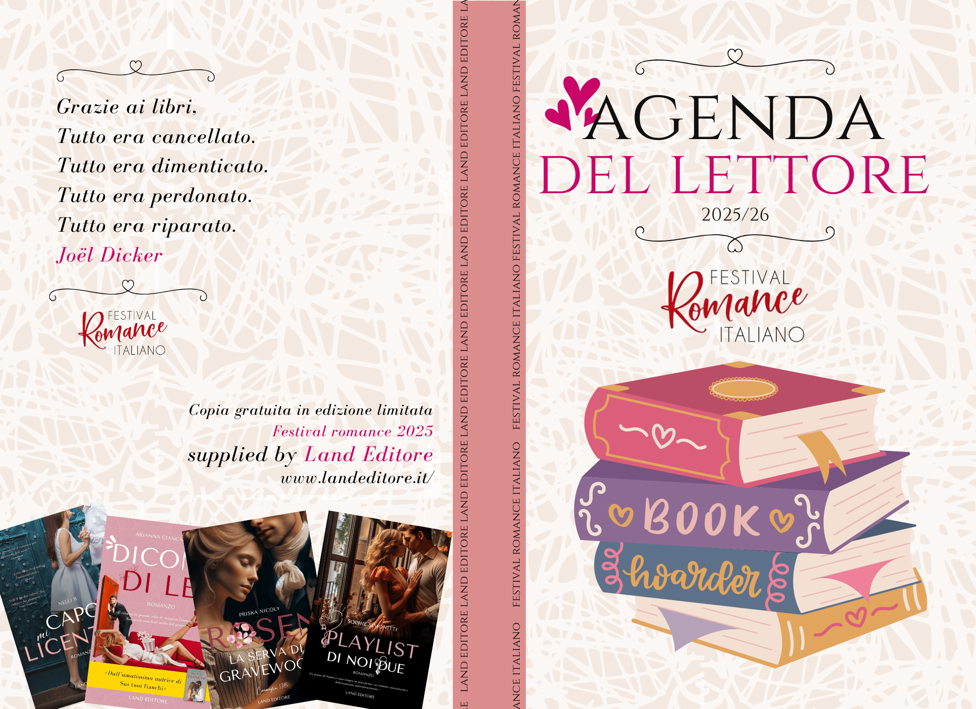- L’agenda è un’edizione limitata e gratuita creata appositamente per il FRI 2025, offerta da Land Editore e Festival del romance italiano.