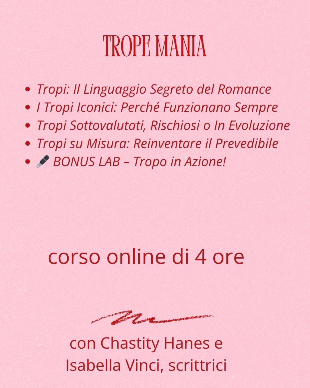 Trope Mania è un corso online dedicato a chi scrive romanzi rosa e vuole imparare a usare i tropi in modo strategico, originale e coinvolgente.