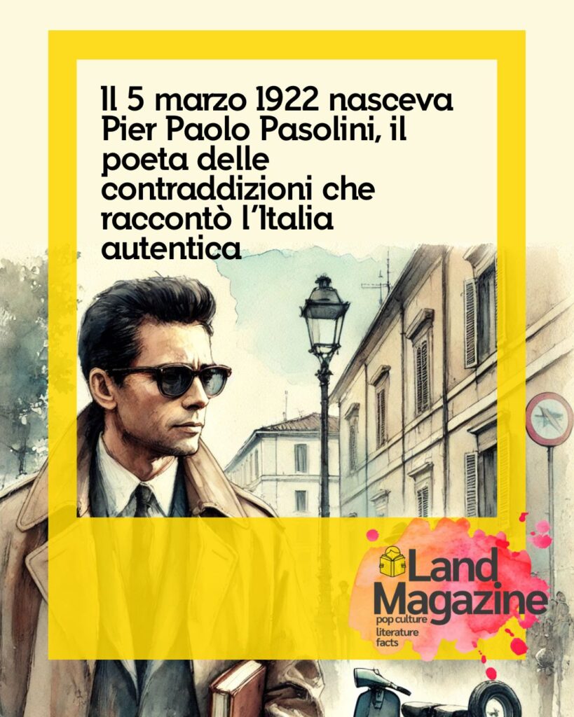 Il 5 marzo 1922 nasceva a Bologna Pier Paolo Pasolini, una delle figure più complesse e affascinanti del Novecento italiano. Poeta, scrittore, regista, giornalista, intellettuale, Pasolini ha attraversato la cultura italiana con la furia e la lucidità di chi non si accontenta mai delle verità di comodo. La sua vita e la sua opera sono state segnate da un incessante confronto con il potere, la società, le radici popolari e il progresso, fino alla tragica e ancora misteriosa morte all’Idroscalo di Ostia il 2 novembre 1975.